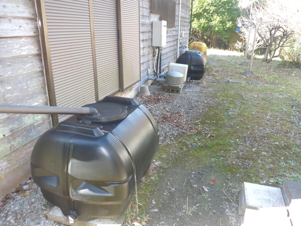 生活用水は雨水を溜めて利用してます。